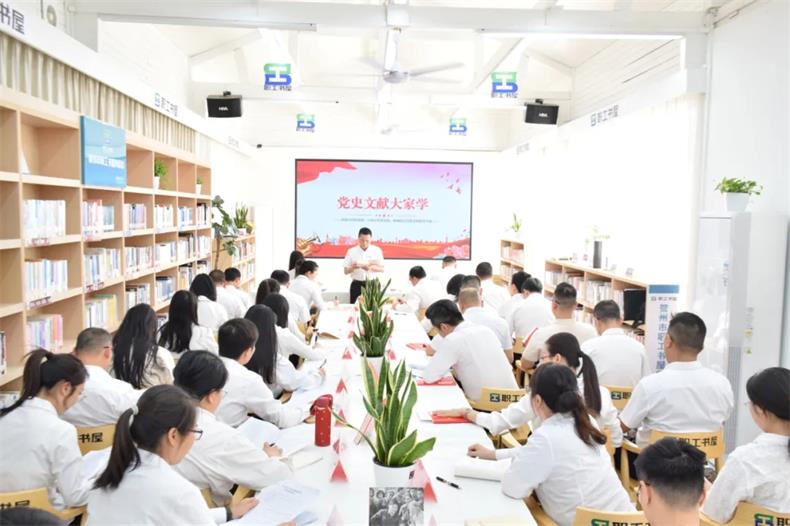 “新時代中國共產黨的歷史使命,就是實現中華民族偉大復興的中國夢……”各黨支部黨員代表集體誦讀《論中國共產黨歷史》節選,在朗朗書聲中重溫百年黨史的波瀾壯闊,感悟從革命年代的星火燎原到新時代的強國征程,在共讀中汲取信仰力量,從而把對黨的忠誠轉化為服務發展的實際行動,腳踏實地做好每項工作。